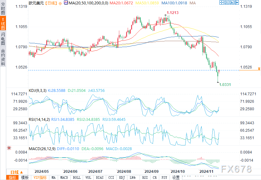 欧元/美元从1.0333低点反弹