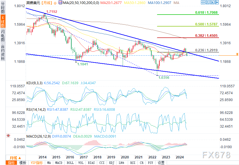 欧元区PMI数据弱于预期,制造业和服务业均跌破50扩张指标,欧元近期在1.0330找到支撑。在本周CPI报告发布之前,预计德国CPI将下降至2.4%,而欧元区核心CPI预计将从2.7%上升至2.8%,年CPI将从2%上升至2.3%。