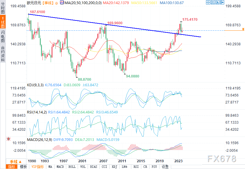 上行方面,升破175.40高点可能会扩大涨幅至188.20,这是1979-2000年下跌趋势的50%斐波那契回撤位,并有进一步走向208的潜力,与61.8%斐波那契回撤水平一致。