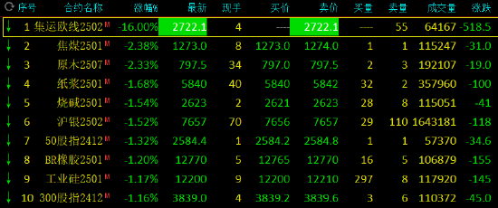 期货收评:沪铅、菜粕、20号胶(NR)、棕榈油、鸡蛋涨超1%,集运欧线封跌停板,跌幅16%;焦煤、原木跌超2%