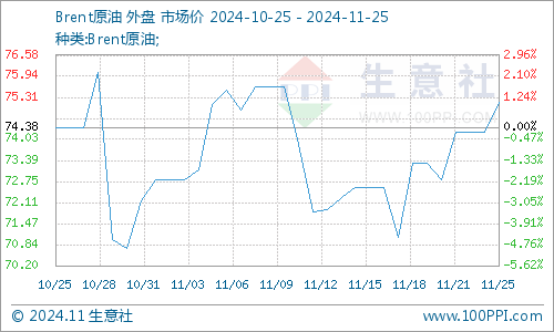 价格主要受成本主导,国际原油伴随着欧洲某国与乌克兰冲突升级,美元汇率下跌,原油价格重心上移。截止11月21日,美国WTI原油期货主力合约结算价报70.10美元/桶,布伦特原油期货主力合约结算价报74.23美元/桶。
