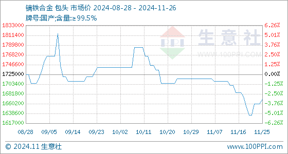 11月26日生意社镝铁合金基准价为1670000.00元/吨