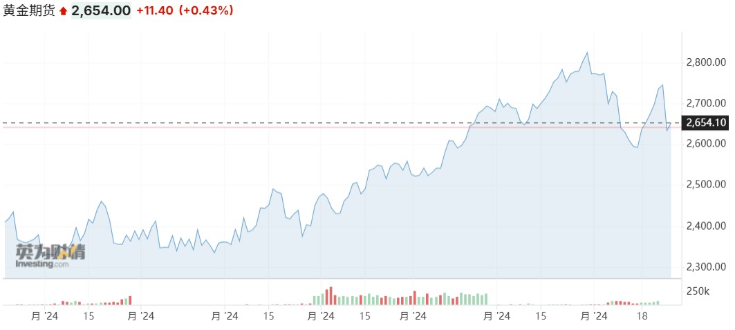 Comex 近月黄金期货收跌3.4%,至2616.80美元/盎司,这是自2020年11月9日以来美元最大单日跌幅,也是自2021年6月17日以来最大单日百分比跌幅;此举终止了连续五个交易日的上涨势头,但金价今年迄今仍上涨了27%。Comex 近月白银期货收跌3.5%至30.210美元/盎司,为9月12日以来的最低结算价。
