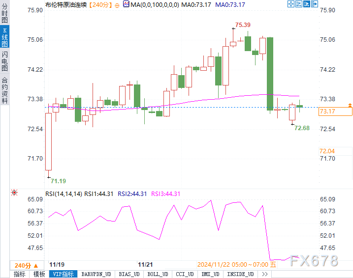 汇通财经APP讯——周二(11月26日),原油市场在上周大幅下跌后趋于稳定。欧洲时段,布伦特原油连续合约报73.13美元/桶,微涨0.02%;美原油连续合约报69.02美元/桶,涨幅为0.12%。市场情绪正围绕以色列与真主党停火的最新进展展开评估,同时对即将召开的OPEC+会议维持减产的可能性保持关注。