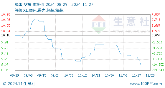 11月27日生意社鸡蛋基准价为9.03元/公斤