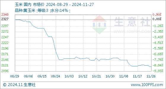 11月27日生意社玉米基准价为2117.14元/吨