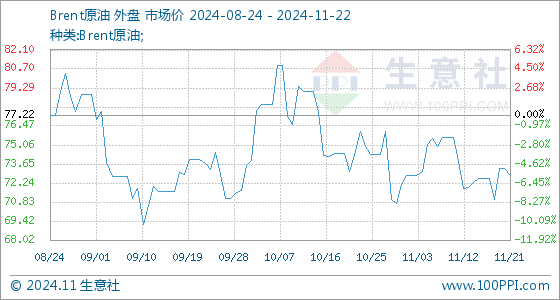 11月22日生意社Brent原油基准价为72.81美元/桶
