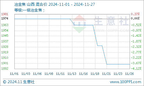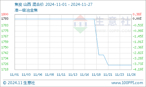 据生意社商品行情分析系统:2024年11月27日山西地区焦炭市场窄幅下行,均价是1725元/吨,山西地区冶金焦价格下行,均价是1900元/吨,27日国内焦炭企业弱势运行,市场情绪仍偏悲观,供应端焦企开工率小幅下滑,厂家让利走单为主。