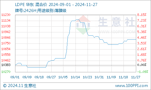 据生意社商品行情分析系统监测,LDPE(2426H)11月1日国内价格在10816元/吨,11月27日均价在10816元/吨,期间报价持平。