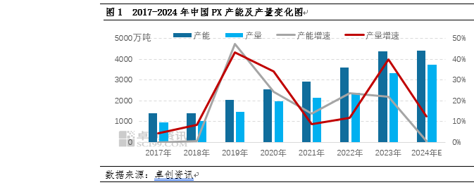 【导语】2024年PX行业进入扩能瓶颈期,产能增长速度骤降,然存量负荷攀升至历史高位,市场竞争局面加剧。展望2025年PX供需结构存在进一步改善空间,但风险因素依旧较多,整体将延续错配式发展模式,进而导致PX价格运行轨迹急涨急跌的可能性增强。