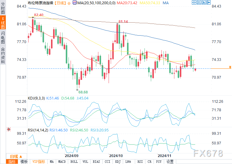 预计今天的交易区间在71.20美元的支撑位和74.20美元的阻力位之间。