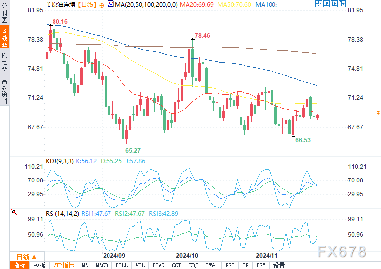 预计今天的交易区间在67.30美元的支撑位和70.30美元的阻力位之间。