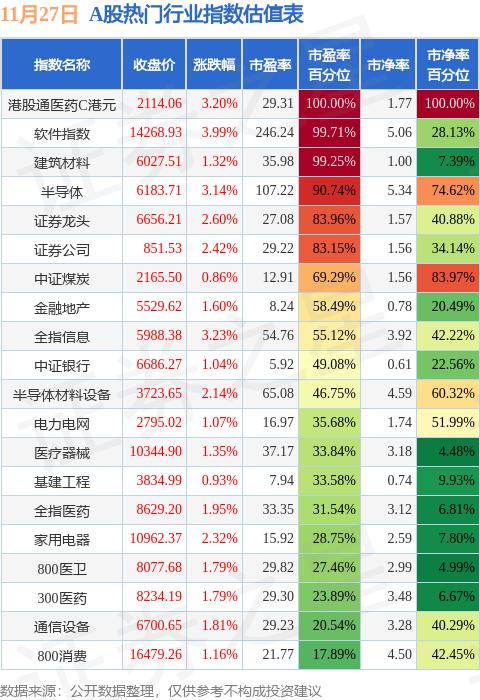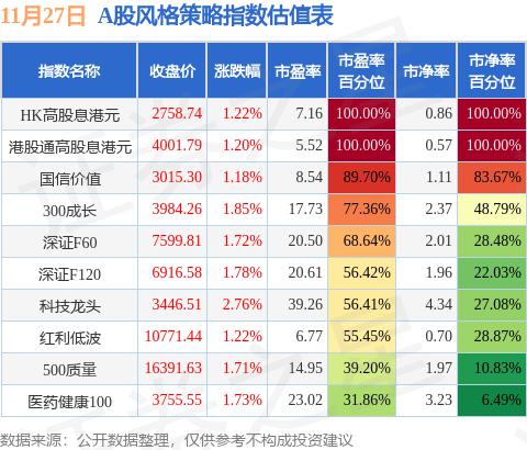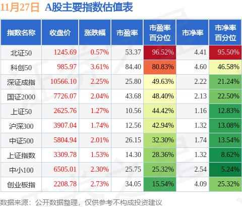 11月27日A股指数最新估值汇总