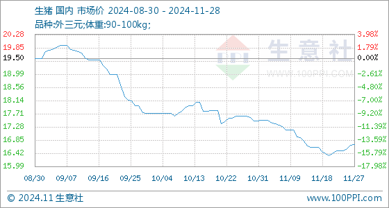 11月28日生意社生猪基准价为16.70元/公斤