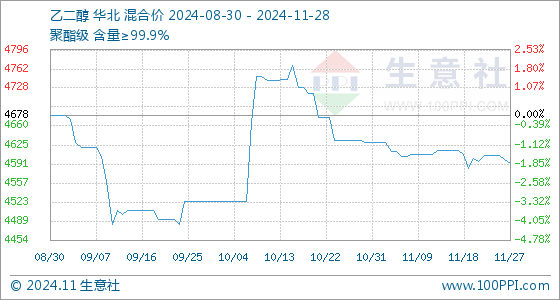11月28日生意社乙二醇基准价为4591.67元/吨