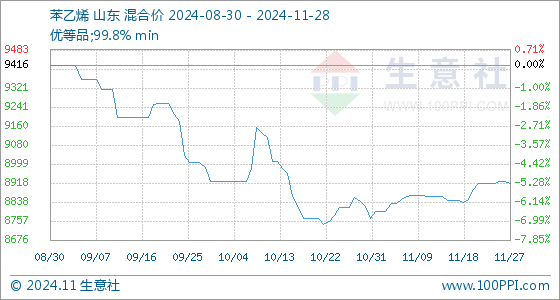11月28日生意社苯乙烯基准价为8916.00元/吨