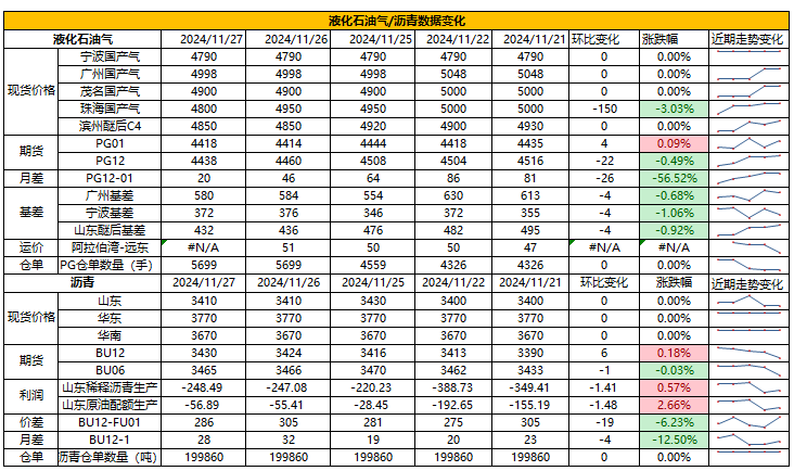 3. 山东民用气4810元/吨(0),华东民用气4796元/吨(+12),华南民用气4960元/吨(0)。
