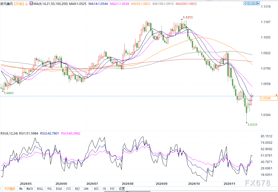 北京时间11月28日10:25,欧元兑美元报1.0558/59