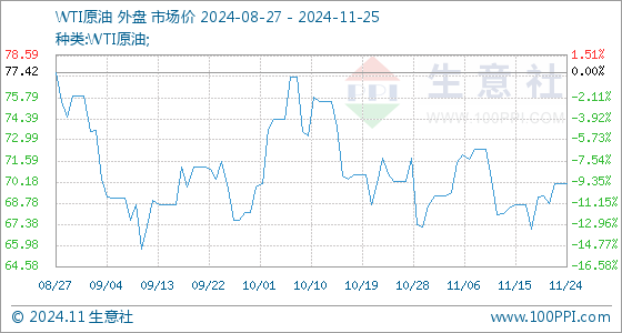11月25日生意社WTI原油基准价为70.10美元/桶
