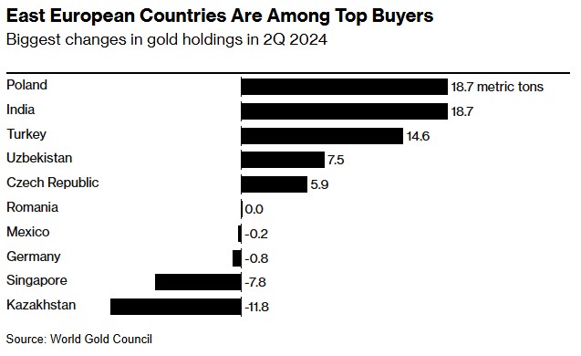 这位捷克决策者并非孤例,从波兰到塞尔维亚,东欧各国的决策者们也纷纷投身于这场淘金热潮。他们通过购买黄金来分散投资风险,并预期金价未来上涨。这一趋势使得东欧成为全球黄金市场的主要买家之一,对金价的上涨起到了推波助澜的作用。
