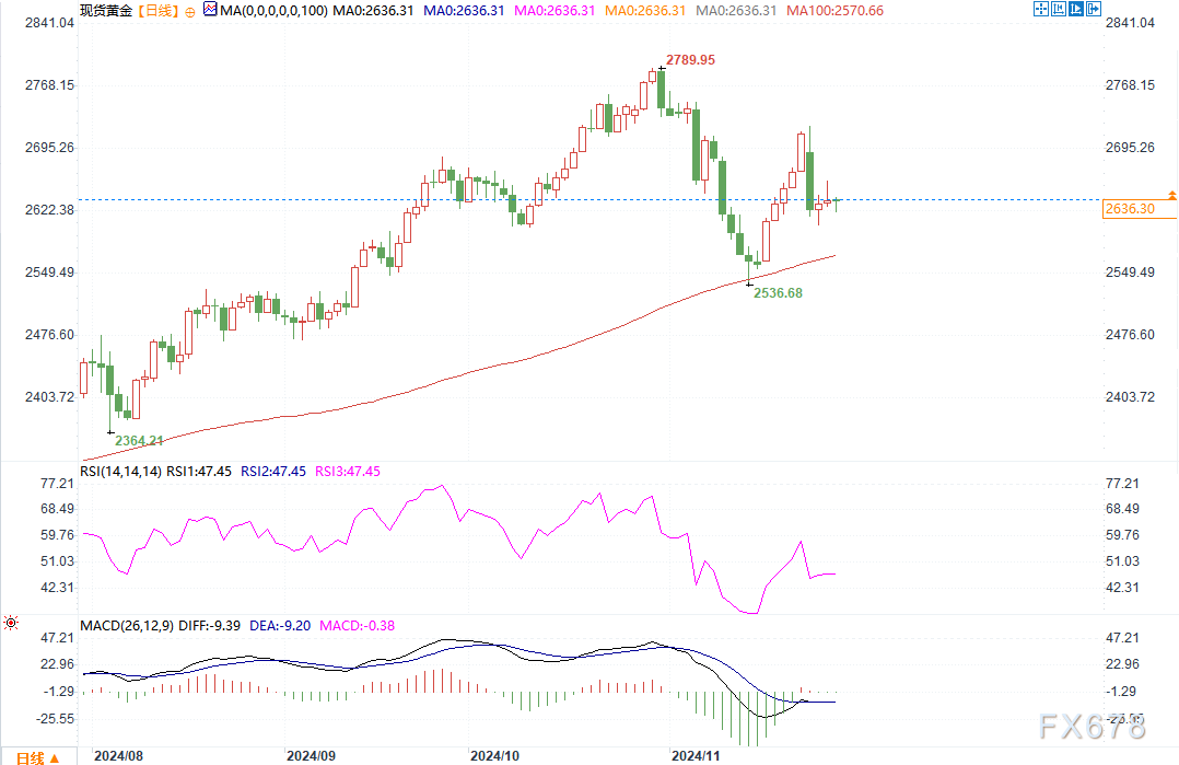 北京时间11月28日15:02,现货黄金报2635.51美元/盎司