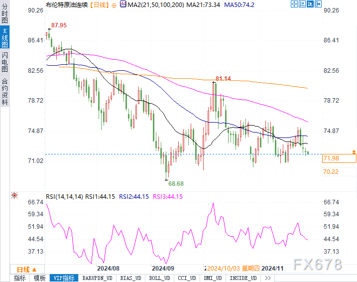 汇通财经APP讯——周二(11月28日),布伦特原油连续合约交投于72.03美元/桶,日内下跌0.4%;美原油(WTI)连续合约报68.50美元/桶,跌幅0.32%。市场情绪整体偏弱,主要受到美国汽油库存意外增加以及需求放缓的拖累。同时,投资者的关注点逐渐转向即将在本周末召开的OPEC+会议,预计会议结果可能为油价提供新的指引。