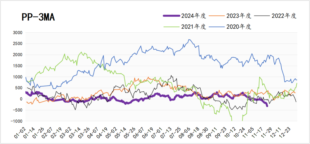 估值现状:PP-3MA价差不断走扩,下游负反馈强化