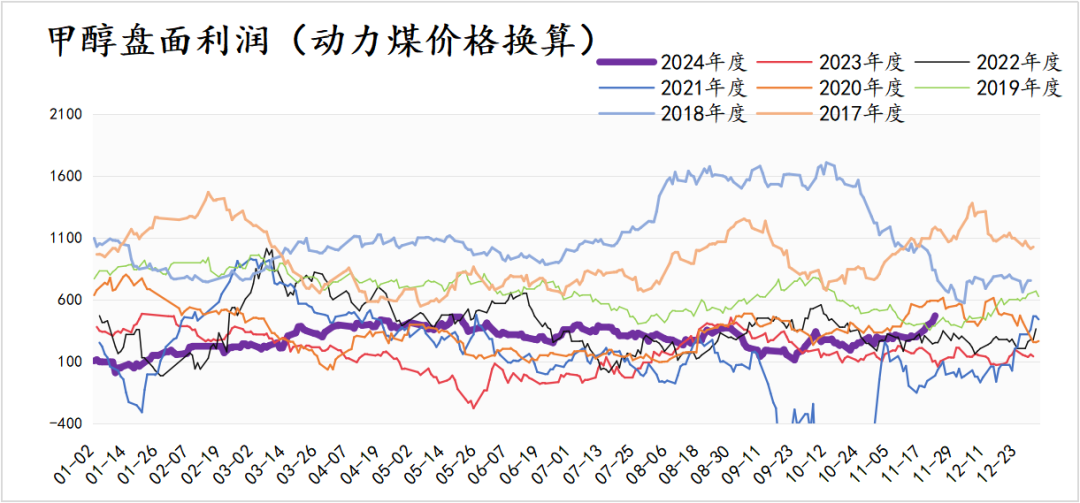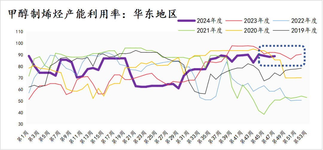 2、四季度,甲醇下游需求逐渐弱化,MTO装置开工也是高位,继续驱动甲醇价格上行的逻辑逐渐弱化。MTO装置开工率91.3%,处于历年高位水平;传统需求即将步入需求淡季,预计开工会逐步下滑。