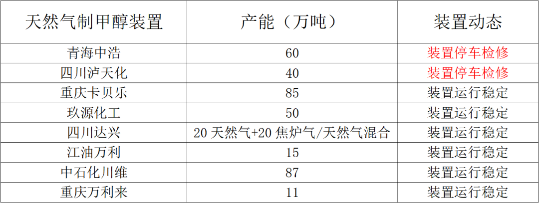 国内气头装置目前兑现停车的有两套,后续还有一定的下降空间:煤制甲醇的产量在利润较好的支撑下在高位;焦炉气制甲醇的产量由于焦炭的利润有所恢复,也在高位;目前天然气制甲醇产量处于3年历史百分位的0.45位置,后续还有下降空间。从装置上看,已经有两套比较大型的装置兑现停车,后续还有一定下降空间。