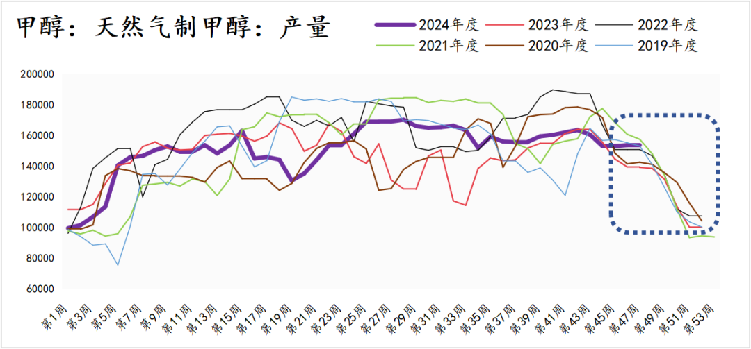 2、传统需求进入季节性淡季,产量预期下滑。2024年甲醇价格的支撑作用一方面来源于MTO装置的高开工,还有一方面是传统需求的增长。据可得的数据统计,随着BDO,MTBE等装置的投产,传统需求对于甲醇的用量在2024年明显高于往年同期水平。但传统需求的季节性淡季即将到来,后续很难进一步驱动甲醇价格上行。