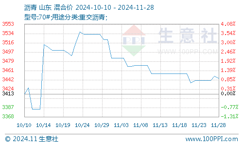 山东地区沥青市场上行15元/吨,其它地区价格维稳,目前沥青供需市场均表现相对弱势。据生意社分析系统,11月28日山东地区价格在3445元/吨,涨幅0.26%。