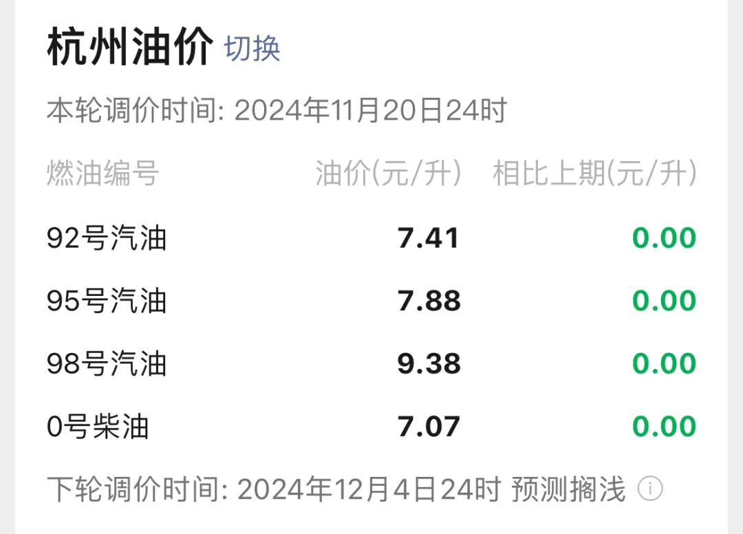 上一轮成品油调价在11月20日24时,当时就是搁浅,即不涨也不跌。