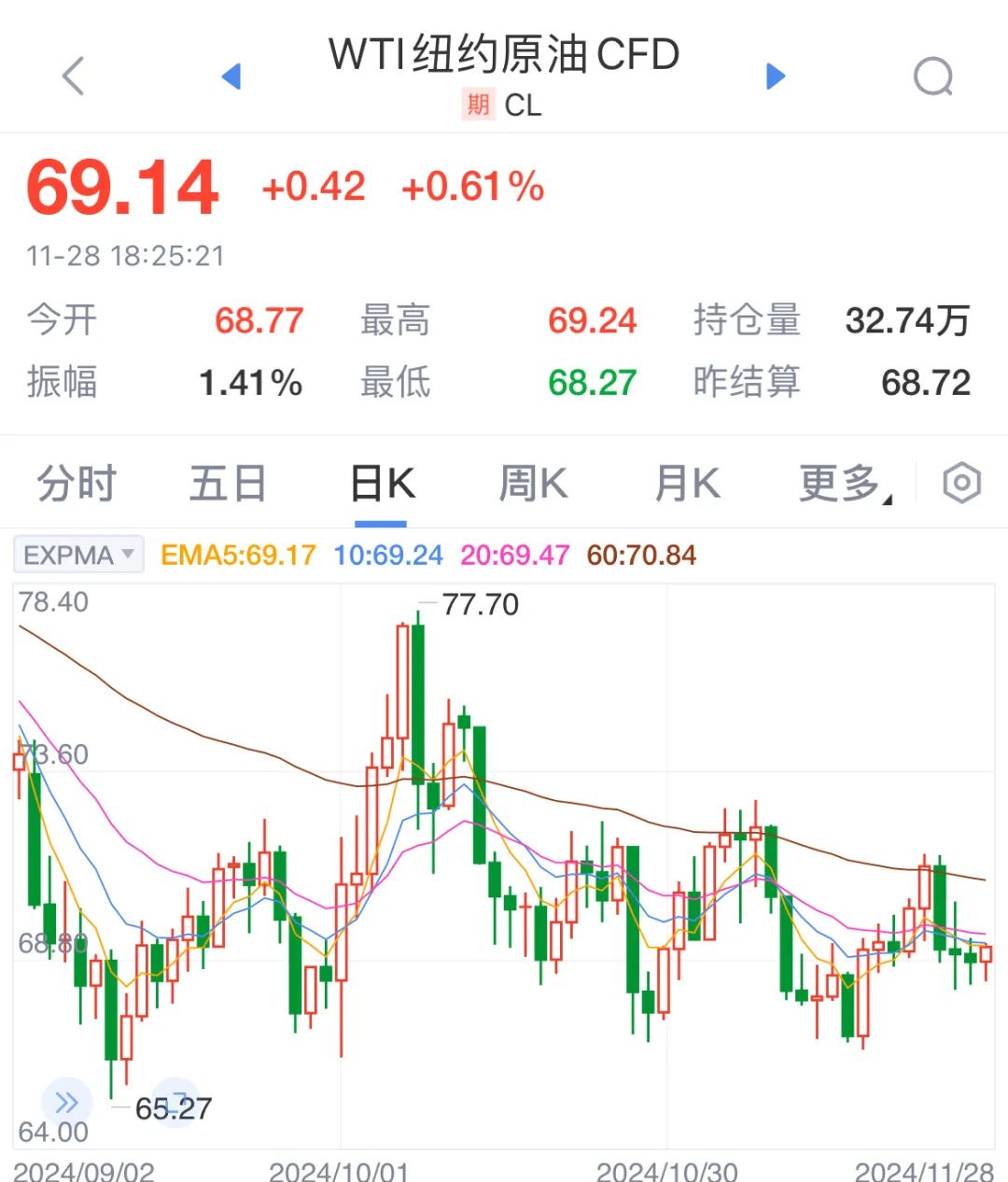 考虑到全球石油需求疲软将对油价造成压力,OPEC+可能在12月的会议上再次推迟其恢复增产的计划,且可能推迟至明年第二季度。几个月来,OPEC一直在寻求逐步恢复自2022年以来停止的供应,但计划一再被搁置。分析师预计,原定于明年1月增产18万桶/日的计划可能被推迟至第二季度。报道称,目前OPEC尚未启动会议前的正式讨论,但联盟代表透露,鉴于当前市场状况,推迟增产是必要的。