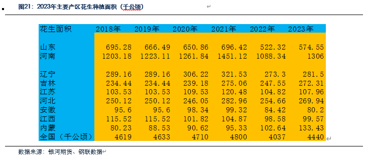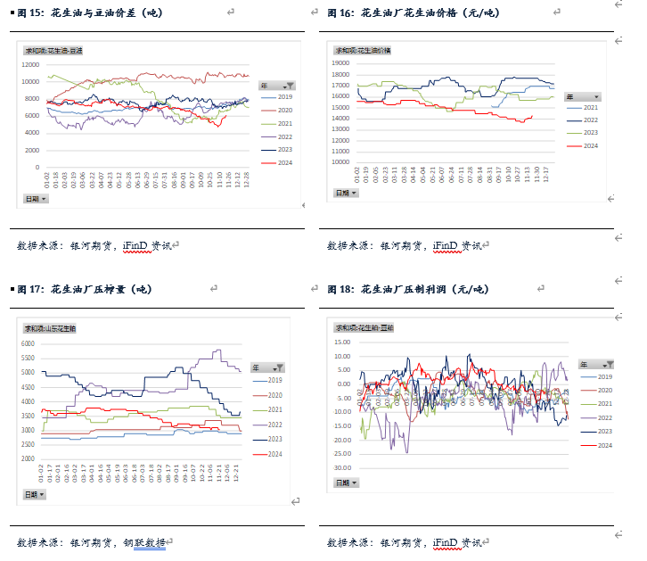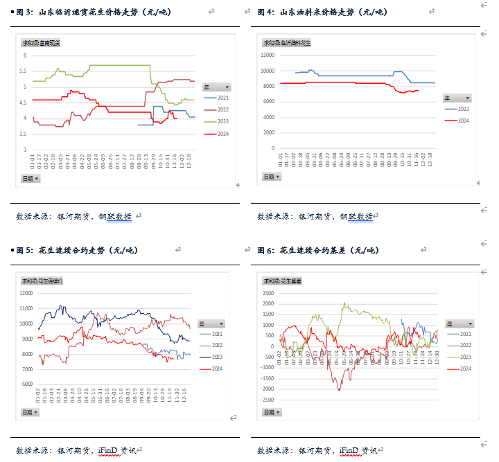 2024年种植面积虽然增加,但单产减少,市场预期今年花生产量和去年持平。新季花生陆续上市,下游需求仍偏弱,油厂陆续进场收购,但通货花生价格回落。