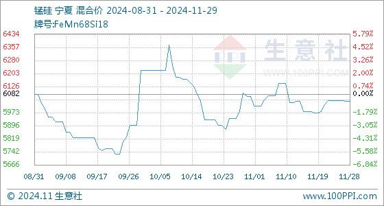 11月29日生意社锰硅基准价为6040.00元/吨