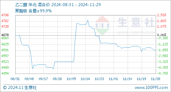 11月29日生意社乙二醇基准价为4591.67元/吨