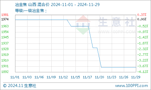 据生意社商品行情分析系统:2024年11月29日山西地区焦炭市场窄幅下行,均价是1725元/吨,山西地区冶金焦价格下行,均价是1900元/吨,11月国内焦炭市场弱势运行为主,价格窄幅下行,原料焦煤市场窄幅震荡,有向下调整,多数焦企利润较低,但是生产意愿比较强,主要以让利走单,积极出货目前钢材市场需求疲软。