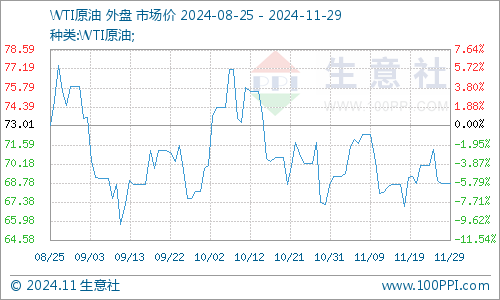 11月国际油价行情震荡为主,月初时间原油市场价格大幅上涨,后期原油价格逐步回落,整体来看原油市场行情变化不大。一方面中东地缘局势不稳定,仍是影响原油市场的重要因素之一。另一方面原油供应仍显紧张,OPEC+220万桶/日的减产计划延长至12月底,供应紧张仍存。但是原油需求前景不被看好,抑制原油市场价格,整体来看原油市场价格宽幅震荡为主,对于国内成品油市场成本支撑有限,国内汽油价格走势上涨,柴油价格走势震荡。