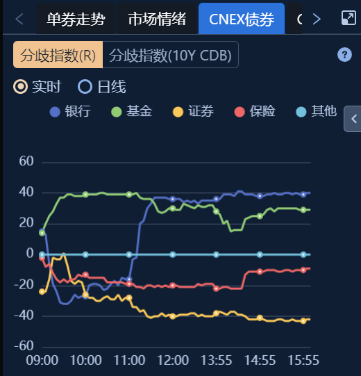 记者注意到,11月29日上午,债市的机构买盘主要力量中,银行现在已从净卖出方向扭转加入了净买入一方阵营。