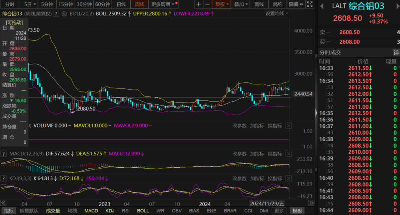 伦铝方面,截至16:46分,伦铝涨2608.5美元/吨,周线跌幅达0.59%。