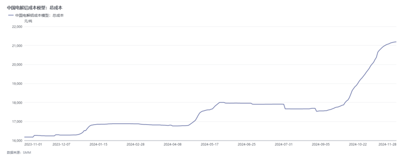 本周国内电解铝企业整体大稳小动,新疆地区新增产能陆续启槽,贵州新老产能置换项 目稳步进行,但新增项目因氧化铝成本过高且难买的问题,投产放缓;此外,本周SMM调研了解,四川某电解铝厂于本周一进行部分电解槽技改,预计需要15天,约影响3000吨产量;重庆某电解铝厂对其老旧小电解槽进行技改以满足国家最新对于电解槽单耗的要求,预计技改所需30-40天。其他地 区个别电解铝厂在12月有检修或技改计划,目前暂无启动,SMM将持续跟踪其进度。