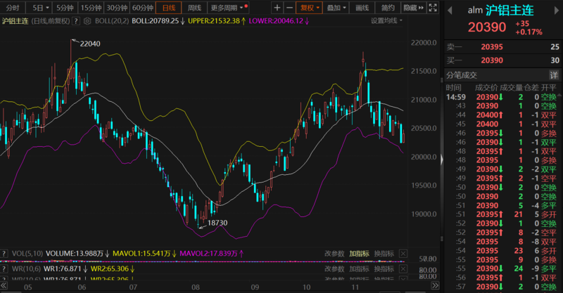 SMM 11月29日讯:本周在宏观面整体偏空的背景下,有色金属承压运行,与此同时,铝价基本面虽然成本端强支撑仍在,但低库存对铝价支撑开始转弱,铝库存开始缓慢累库,在多重因素拖累下,本周铝价呈现震荡下跌的态势,截至11月29日日间收盘,沪铝以0.17%的涨幅报20390元/吨,周线跌幅达0.78%。