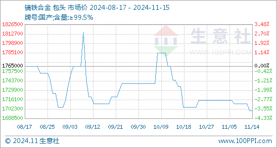 11月15日生意社镝铁合金基准价为1700000.00元/吨