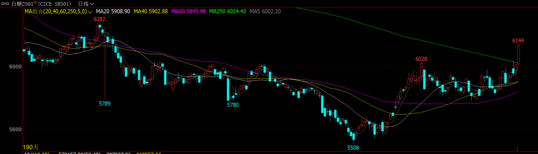 白糖期货周五增仓大涨,触及逾7个月高位。主力合约上涨2.8%,报收6135元/吨;5月合约上涨2.1%,报收6083元/吨。目前主力合约距今年8月新低5508元/吨上涨达115.5%,白糖市场发生了什么?
