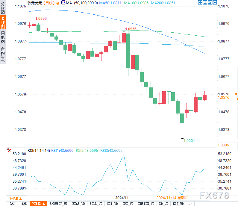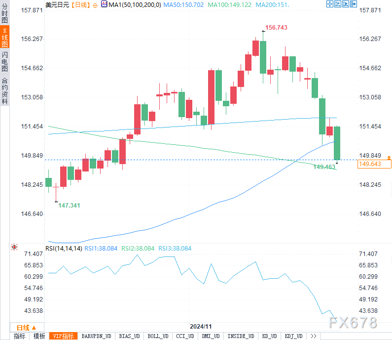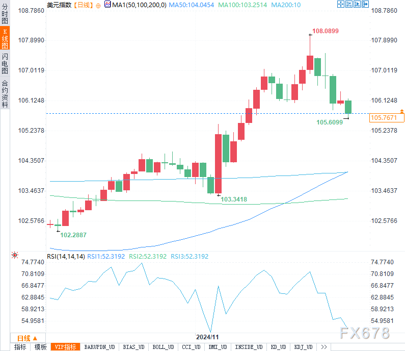 美元指数周五下跌0.31%,报105.74,盘中一度触及105.61的11月12日以来低点。尽管如此,11月美元指数累计上涨1.78%,延续了特朗普胜选后的升势。市场预期新政府将推行放松商业监管与财政刺激政策,美元因此受益。但美元走强也部分抑制了日元和欧元的升幅。
