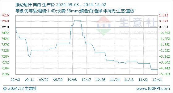 12月2日,生意社涤纶短纤基准价为7176.67元/吨,与本月初持平。