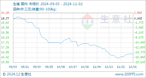 12月2日,生意社生猪基准价为16.72元/公斤,与本月初持平。