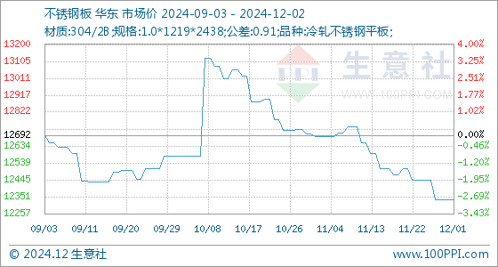 12月2日生意社不锈钢板基准价为12335.71元/吨