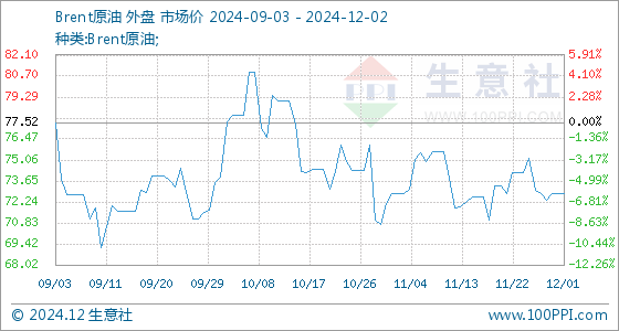 12月2日生意社Brent原油基准价为72.78美元/桶