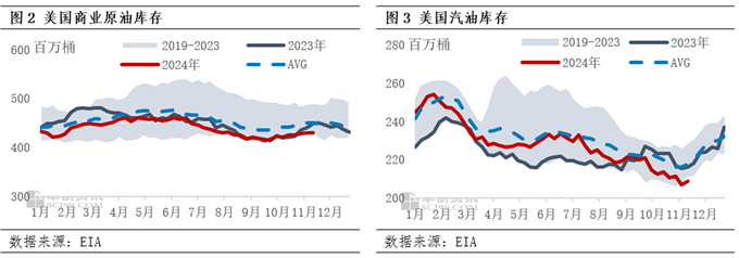 特朗普选举获胜前,市场早已计入“特朗普交易”预期,选举结果落定后,由于选举不确定性带来的风险出清,短期市场风险偏好上行、美股走强,带动了油价的上涨,但涨幅有限。同时,市场也从选举前的计价特朗普获胜转为计价特朗普当选。整体来看特朗普的政策主张确实是两面交错、充满矛盾,但从目前的视角来看,其更为偏向于率先实施加征关税、放松能源监管、强化对伊制裁方面的内容,中长期来看对油价影响偏空。